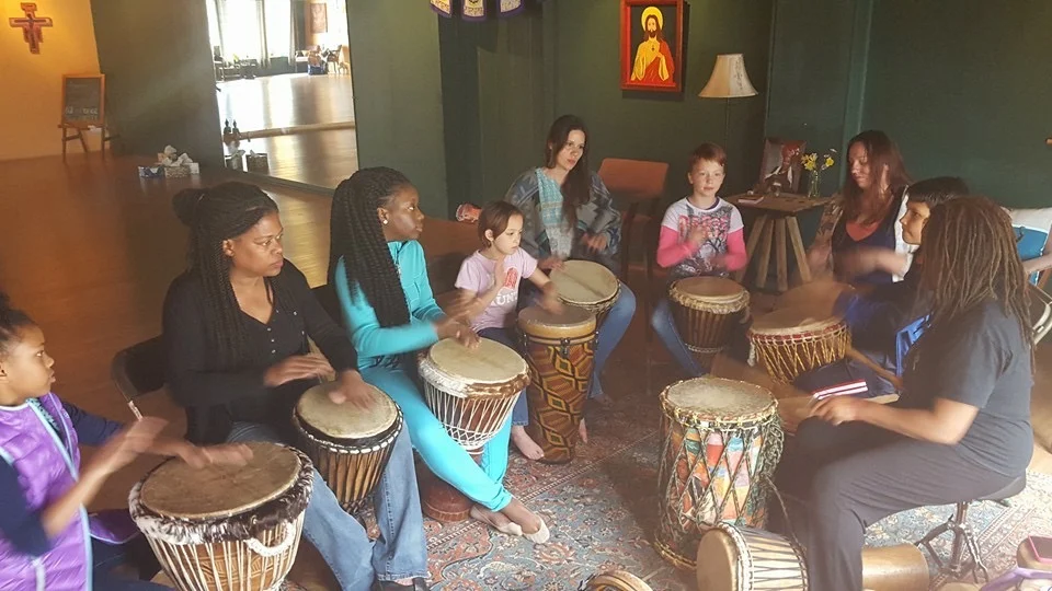 The novice and the experienced work side by side in an intergenerational setting learning from each other while applying tools and pedagogy introduced in classes. DDM dispels the notion that art and creativity are for an elite group of performers and instead focuses on the cultural and community ties of these traditions. Learn how drums are one of the original tools for meditation combining all of the senses, connecting to those around us, as well as with Earth and nature itself.
